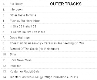 Sound artists loopool (Jean-Paul Garnier) and Sisiutl (Benj Cameron) collide together with a piece inspired by the poem "I live Yet Do Not Live In Me" by Saint John of the Cross, this piece written while imprisoned, is about longing for death so to be brought closer to god, yet is reminiscent of a dissociative disorder call depersonalization [see track 6]. Depersonalization strikes us as thee ultimate goal of control and power, to strip one of self and identity, to make one a hollow shell that only acts without feeling and is exiled from thee present. The aim of the OTTT is to thwart control and to give thee self back to thee self, its essence is one of self empowerment, and this can be achieved through discipline and collaborative action such as thee comp itself. Acting together in thee present. (For more information see loopool site as this information was provided by Garnier, all-rights reserved, 2011, see site for details)